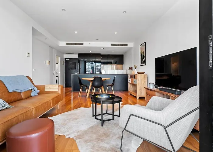 Die Lage ist ein unschlagbares Merkmal der Ferienwohnung Sky Way On 10Th - A Sleek Balcony Pad With Parking. Im pulsierenden Melbourne CBD gelegen, sind zahlreiche Sehenswürdigkeiten, darunter das Marvel Stadium, nur 500 Meter entfernt. Die Nachbarschaft besticht durch eine Vielzahl von Designer-Boutiquen und lebhaften Märkten.